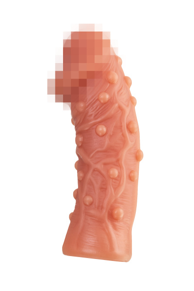 Насадка KOKOS реалистичная с дополнительной стимуляцией, TPE, телесная, 15.6 см с крупными пупырышками