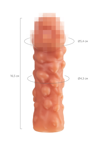 Насадка KOKOS реалистичная с дополнительной стимуляцией, TPE,телесная, 16,5 см, Ø 5,2 с крупными пупырышками