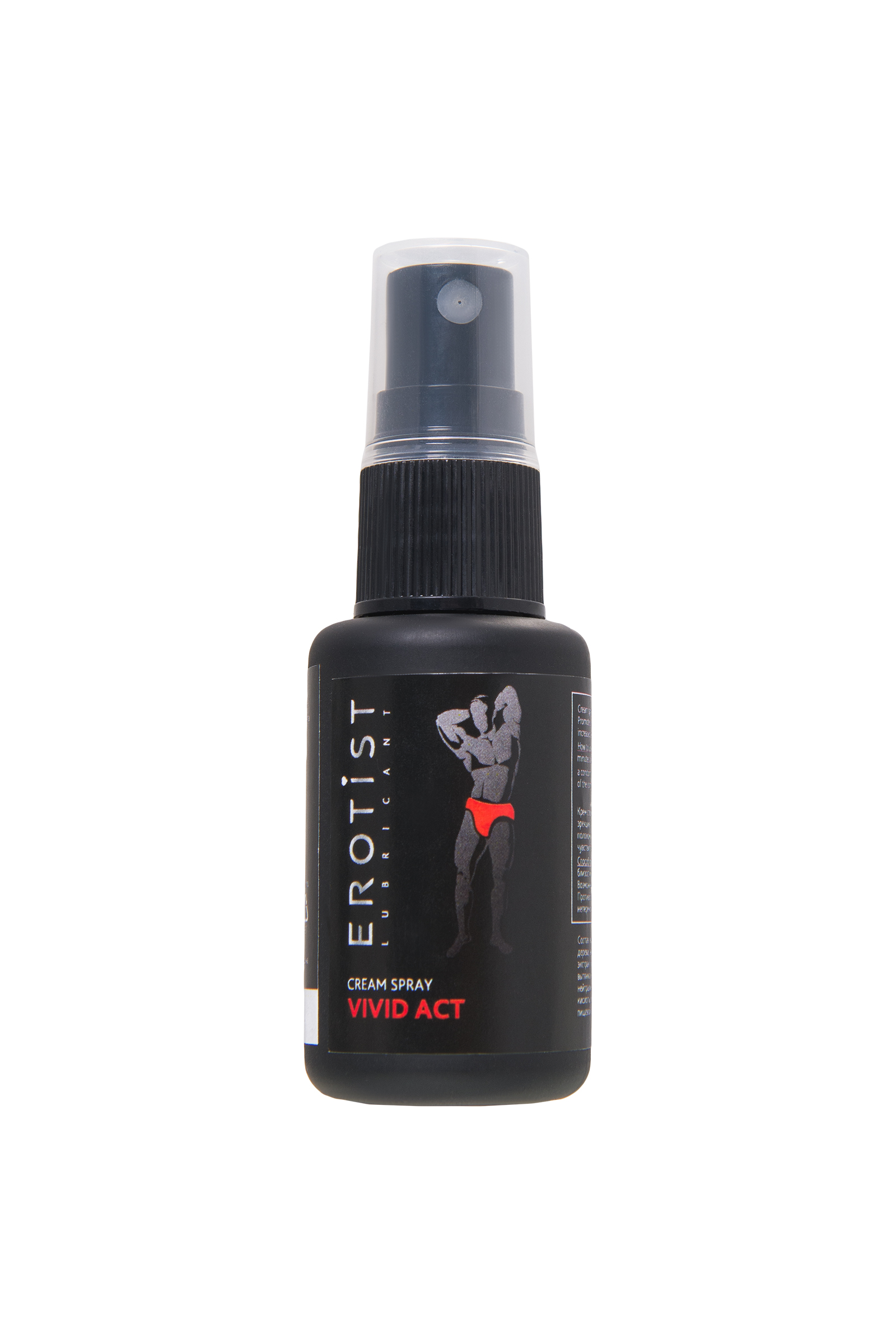 Для раскрытия сексуального потенциала в полной мере воспользуйтесь эффективным возбуждающим спрей-гелем для мужчин Эротист Vivid Act. Средство увеличивает длительность полового акта и является оптимальным дополнением для организации страстного соития. Возбуждающий и стимулирующий спрей помогает настроиться на нужный лад, снять усталость, придать необходимую уверенность в своих силах и разнообразить игры в постели. Возбуждение достигается за счет сбалансированной активной растительной формулы, путем наполнения кровью тканей полового члена и эрогенных зон, что многократно увеличивает чувствительность и обостряет влечение. Эффективные компоненты средства благодаря активной мицеллярной форме: быстро всасываются в кровь способствуют стабилизации эрекции и ускорению кровообращения повышают эластичность тканей, благодаря чему увеличивается размер полового органа придают чувствительность за счет приливов крови к органам малого таза повышают либидо и потенцию продлевают продолжительность полового акта, яркость и силу оргазма. Гель-спрей Vivid Act способствует: улучшению циркулирования крови в пенисе стимуляции нервных окончаний головки полового члена мужчины увеличению чувствительности усилению способности восприятия сексуальных стимулов продлению сексуального контакта Рекомендации по применению: за 5-10 минут до полового акта нанести спрей на пенис во время сексуального стимулирования, что позволит сделать приятнее любой сексуальный контакт и подарит партнерам чувственную прелюдию. Возможно использование с презервативом. Не содержит гормонов, не вызывает привыкания. Основные действующие компоненты: Экстракт метельчатого дерева оказывает возбуждающее воздействие, усиливает влечение к партнерше. Способствует улучшению кровоснабжения в органах малого таза, усилению эрекции, значительно увеличивая время интимного акта. Экстракт корней священного фикуса способствует улучшению кровотока в мужском достоинстве и усилению эрекции. За счет растяжения пещеристых тел полового органа кровью, происходит некоторое его увеличение в длину и ширину. Экстракт гуараны рекомендуется для достижения эрегированного состояния члена, оказывает тонизирующий эффект, придает дополнительные силы и энергию и повышает сексуальную силу мужчины. Экстракт слизи улитки способствует повышению продуцирования тестостерона, возбуждению на эмоциональном и физиологическом уровне, улучшению процесса усвоения полезных для мужского здоровья витаминов. Вытяжка из пантов марала повышает уровень гормонального фона у мужчин, способствует быстрому восстановлению сперматогенеза, прекрасно стабилизирует половую функцию. Карбомер вещество гелевой структуры, обладает увлажняющим действием, увеличивает время абсорбции активных компонентов, повышая эффективность средства. Метиловый эфир молочной кислоты – сенсорный агент, способствует возбуждению. Гепарин пособствует усилению эрекции и увеличению продолжительности полового акта. Винилилбутиловый эфир сенсорный агент. Обладает разогревающим эффектом, способствует усилению возбуждения и увеличению выработки естественной смазки, продлевает эрекцию и значительно повышает мужскую силу. Противопоказания: индивидуальная непереносимость компонентов. Форма выпуска: флакон с дозаторо
